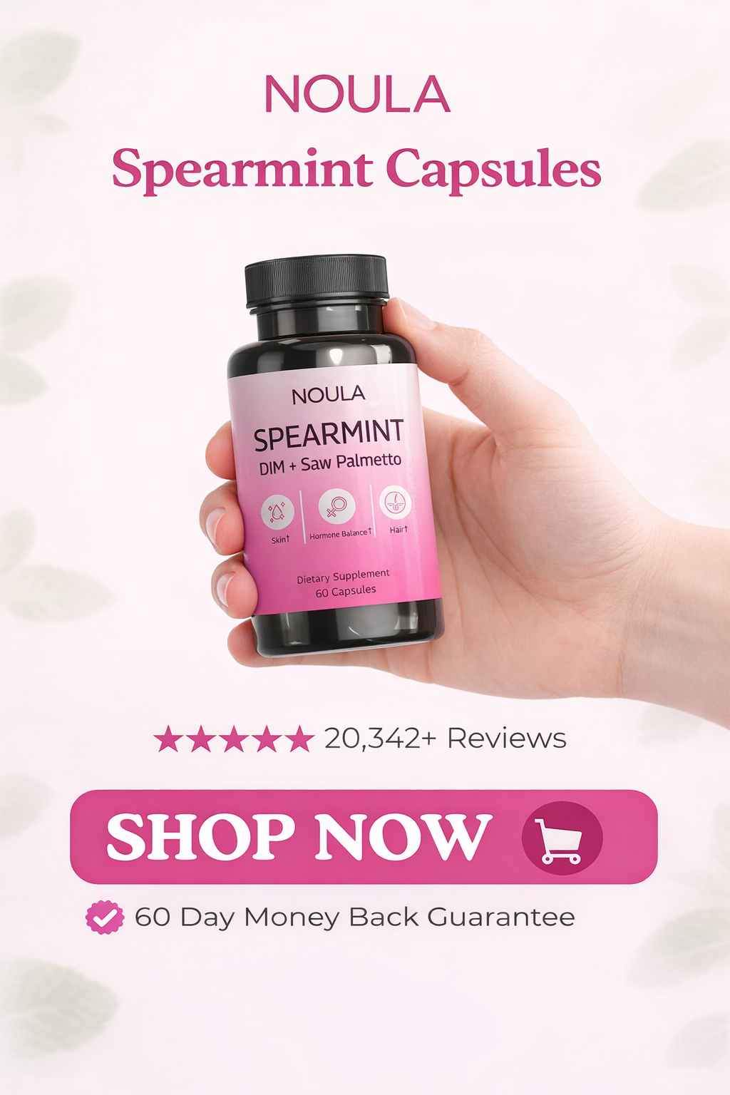 "A few months ago my doctor confirmed I have PCOS and elevated testosterone. After some research on spearmint's anti-androgen properties, I decided to try these capsules and they're my holy grail now!!! My skin has had a noticeable brightening effect—way fewer breakouts on my chin and jawline. I feel happier, more balanced hormonally, and I can even see that my facial hair is growing back slower!! I also love that it's just natural spearmint and supporting ingredients, no complex stacks or unnecessary fillers :)"